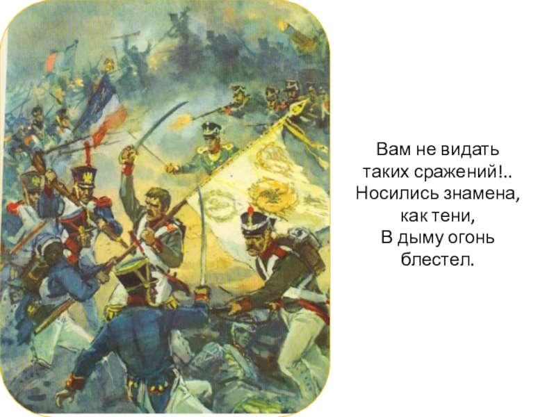 Слайд 14Вам не видать таких сражений!.. Носились знамена, как тени, В дыму огонь блестел.