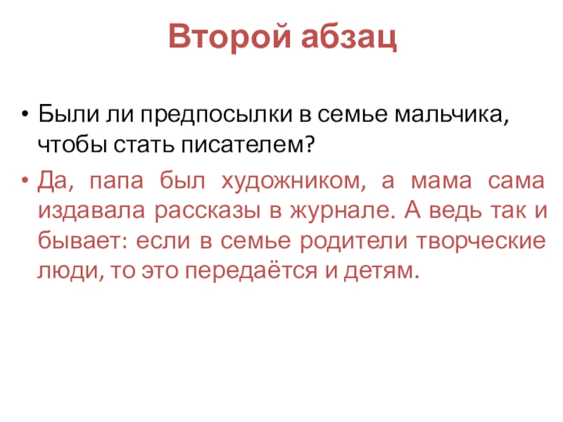Были ли предпосылки в семье мальчика, чтобы стать писателем?