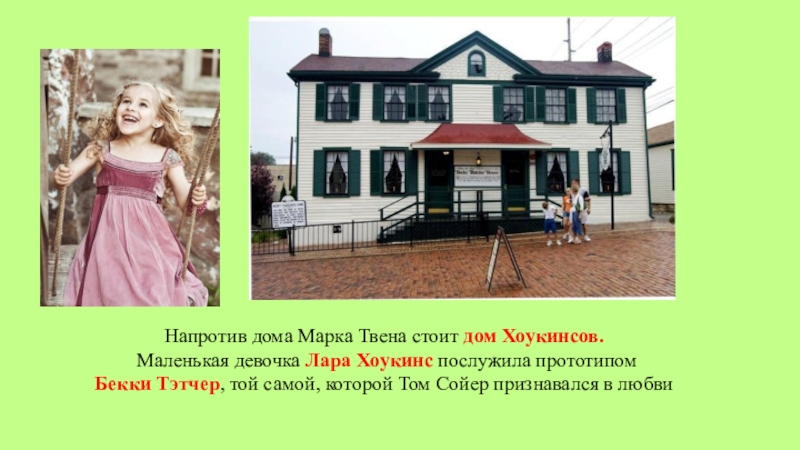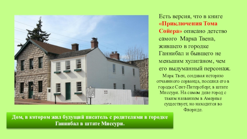 Дом, в котором жил будущий писатель с родителями в городке Ганнибал в штате Миссури.