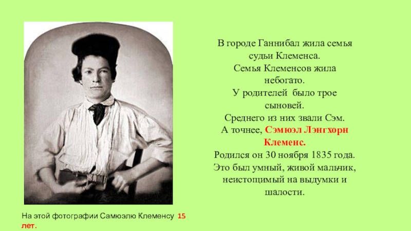 На этой фотографии Самюэлю Клеменсу 15 лет.