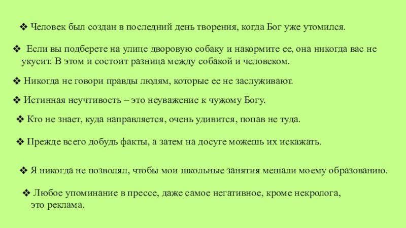 Я никогда не позволял, чтобы мои школьные занятия мешали моему образованию.