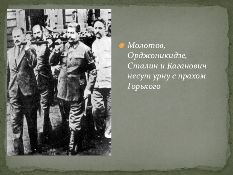 Молотов, Орджоникидзе, Сталин и Каганович несут урну с прахом Горького