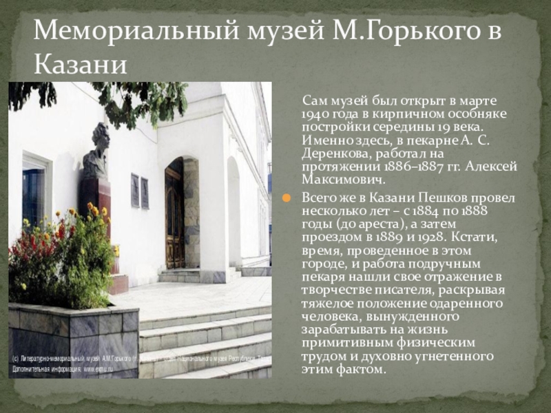 Слайд 15Мемориальный музей М.Горького в Казани