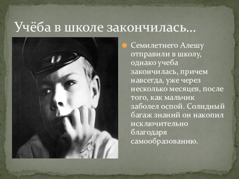 Алеша рано осиротел – в 10 лет он потерял и мать.