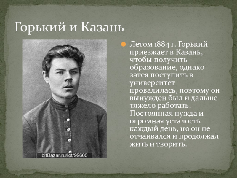 Летом 1884 г. Горький приезжает в Казань, чтобы получить