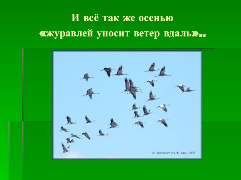 Слайд 18И всё так же осенью «журавлей уносит ветер вдаль»..