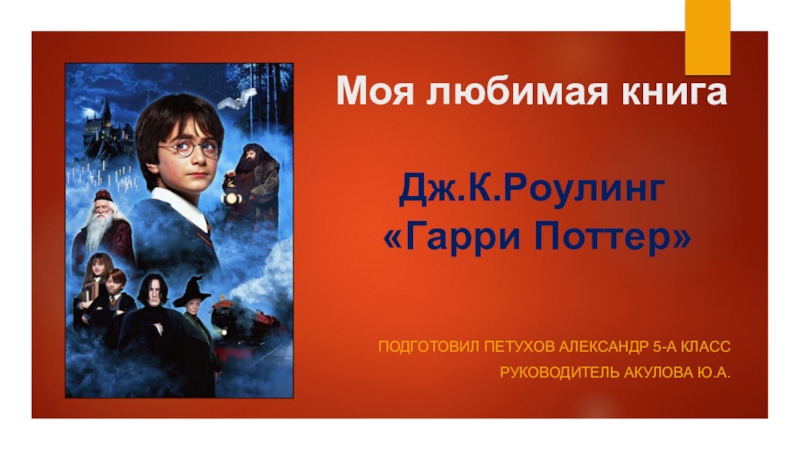 Моя любимая книга  Дж.К.Роулинг  «Гарри Поттер»    Подготовил Петухов Александр 5-А классРуководитель Акулова Ю.А.