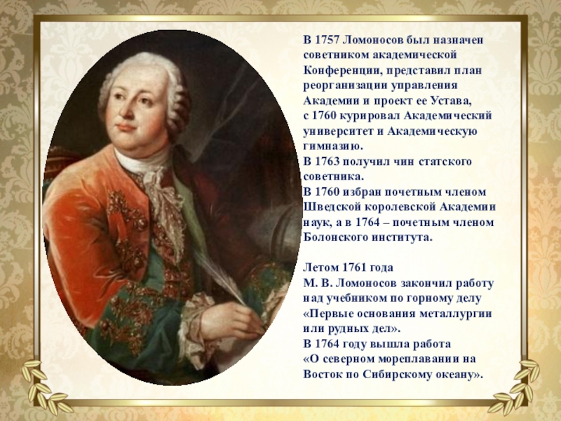Слайд 31В 1757 Ломоносов был назначен советником академической Конференции, представил план реорганизации
