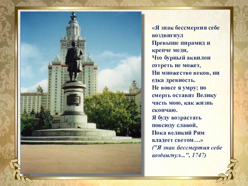 Слайд 45«Я знак бессмертия себе воздвигнул