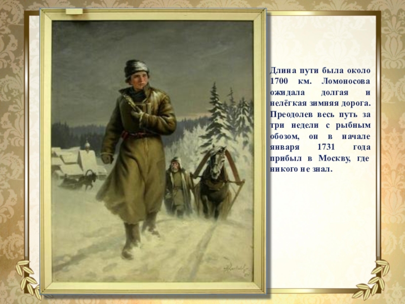 Слайд 11Длина пути была около 1700 км. Ломоносова ожидала долгая и нелёгкая