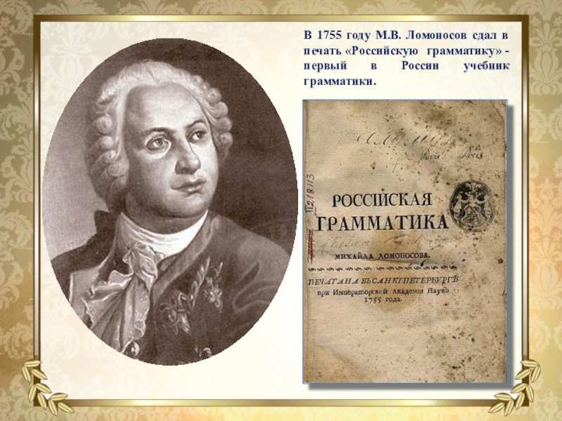 Слайд 30В 1755 году М.В. Ломоносов сдал в печать «Российскую грамматику» - первый в