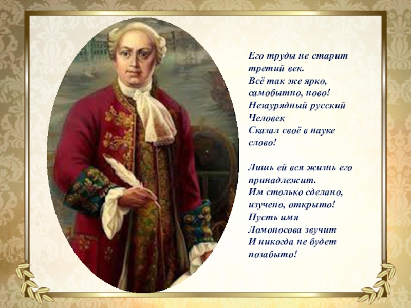Слайд 23Для своих современников Михаил Ломоносов был прежде всего поэтом. Первые поэтические