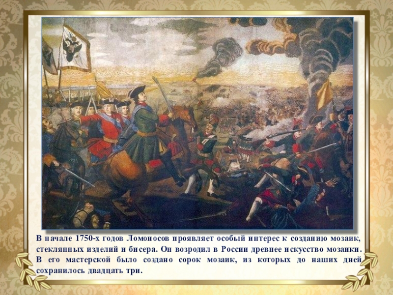 Слайд 39В начале 1750-х годов Ломоносов проявляет особый интерес к созданию мозаик,