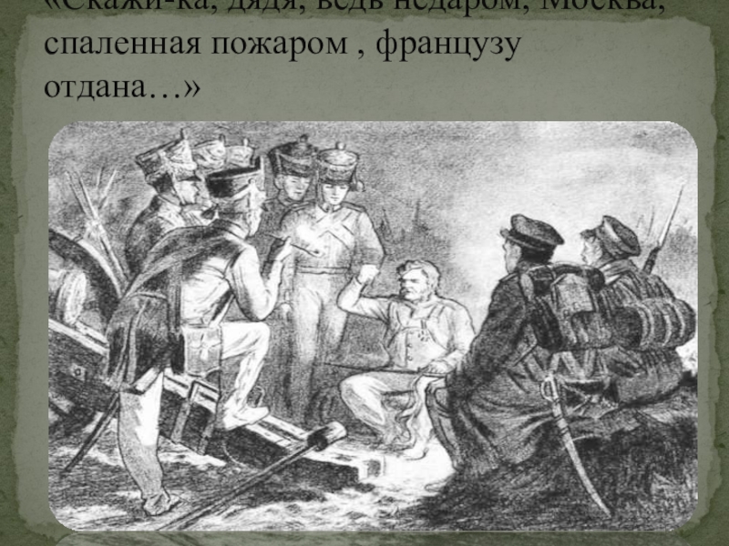 Слайд 3«Скажи-ка, дядя, ведь недаром, Москва, спаленная пожаром , французу отдана…»