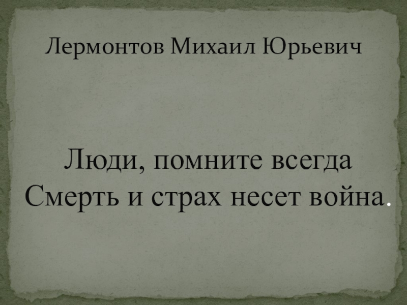 Лермонтов Михаил ЮрьевичЛюди, помните всегдаСмерть и страх несет война.