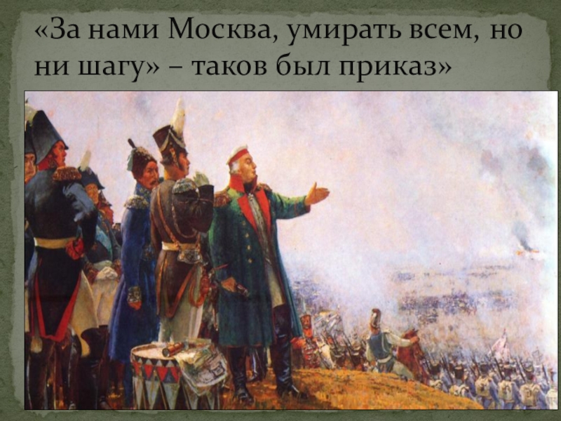 Слайд 7«За нами Москва, умирать всем, но ни шагу» – таков был