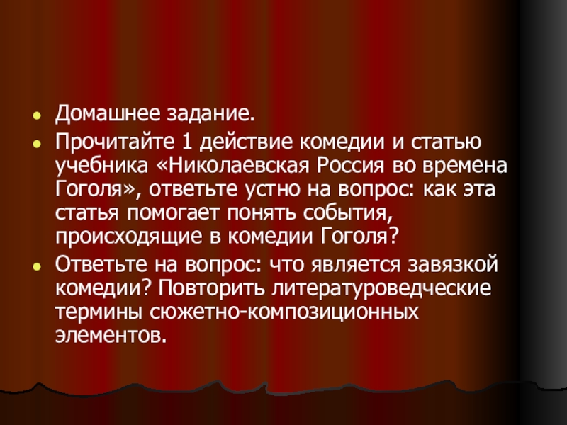 Прочитайте 1 действие комедии и статью учебника «Николаевская Россия во