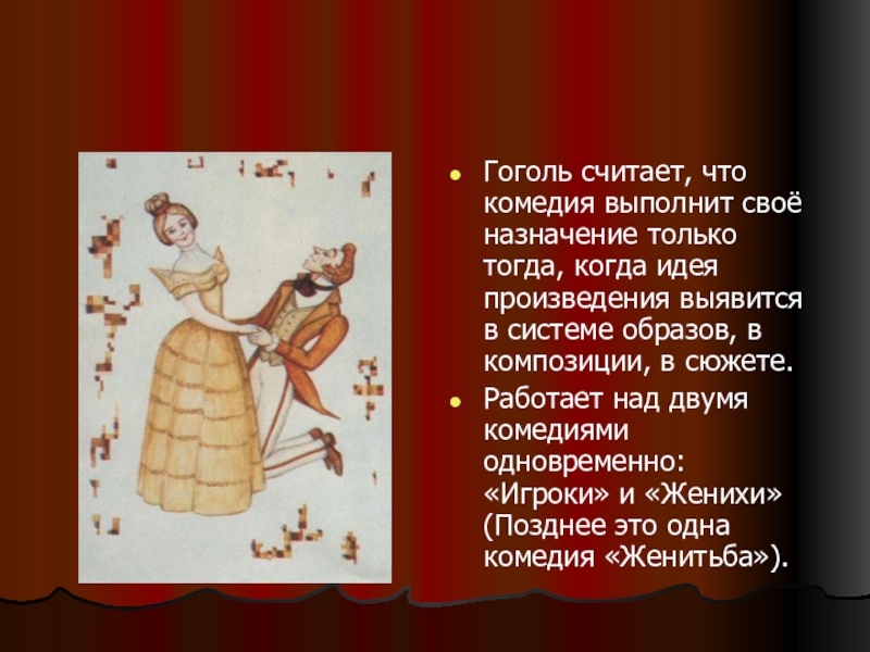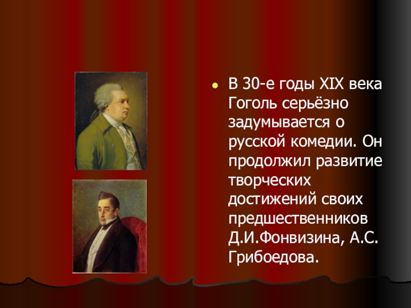 В 30-е годы XIX века Гоголь серьёзно задумывается о русской комедии.