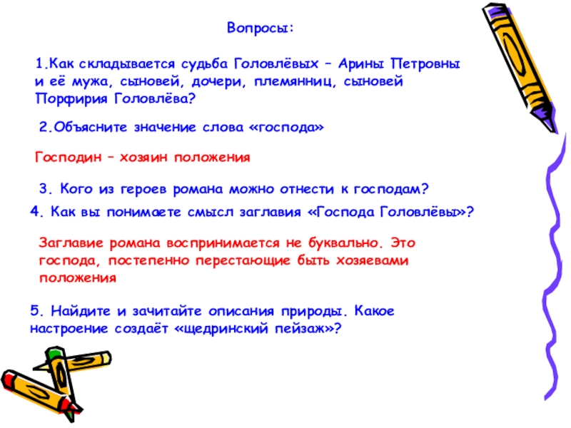 4. Как вы понимаете смысл заглавия «Господа Головлёвы»?