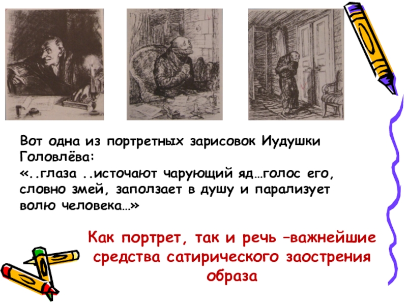 Как портрет, так и речь –важнейшие средства сатирического заострения образа