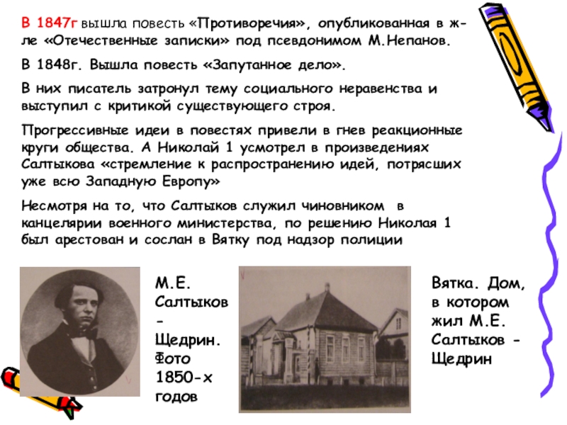 Псевдоним М.Е.Салтыкова –Щедрина –Николай Щедрин.