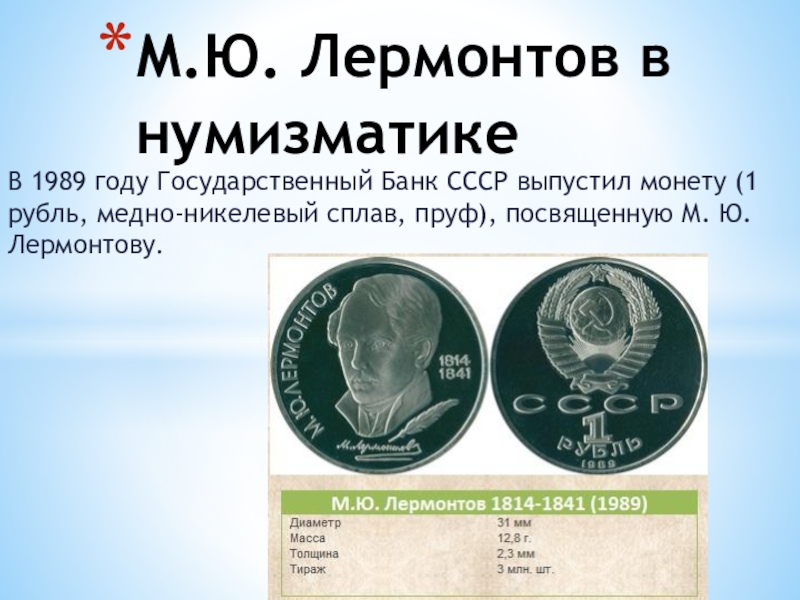 М.Ю. Лермонтов в нумизматике