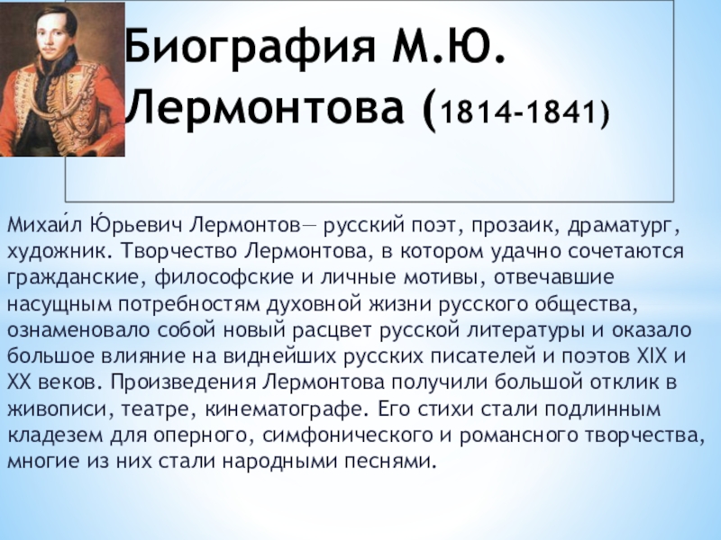 Творчество М.Ю. Лермонтова