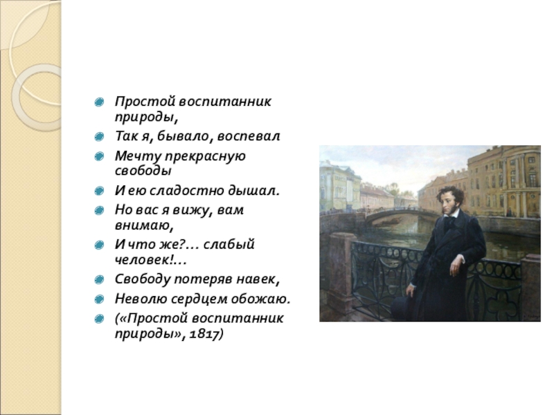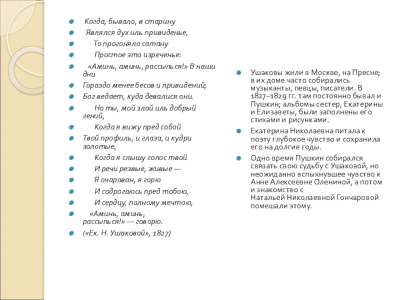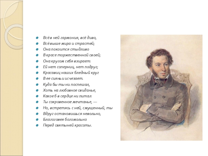 Пушкин же был влюблен, мечтал о женитьбе, писал взволнованные и чуть печальные стихи: «Её глаза», «Ты и вы», «Предчувствие», «Город пышный, город бедный…».