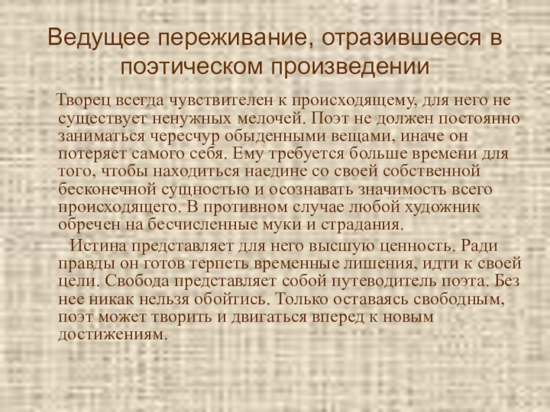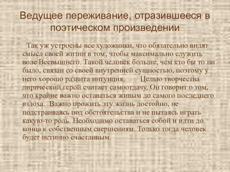 Слайд 13Ведущее переживание, отразившееся в поэтическом произведении