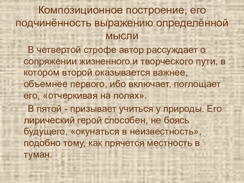Слайд 10Композиционное построение, его подчинённость выражению определённой мысли