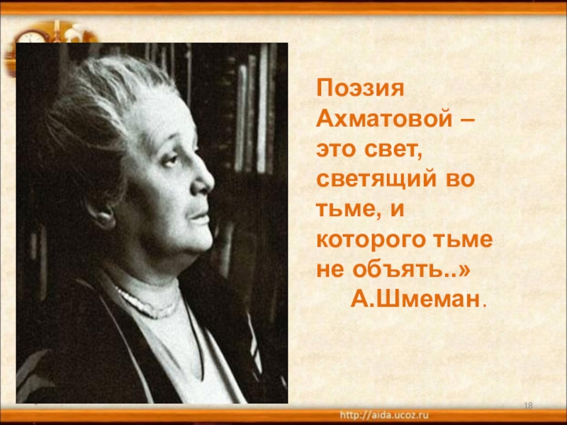 *Поэзия Ахматовой – это свет, светящий во тьме, и которого тьме не объять..»
