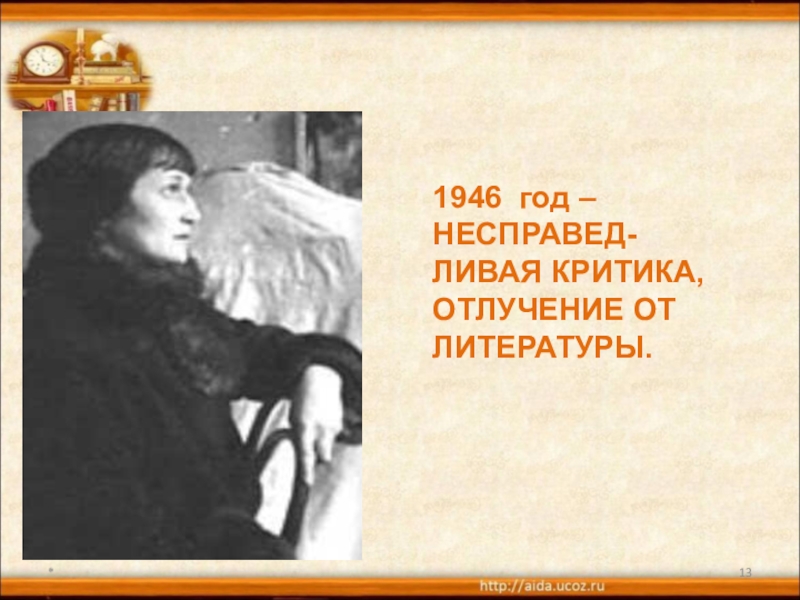 *1946 год – НЕСПРАВЕД- ЛИВАЯ КРИТИКА, ОТЛУЧЕНИЕ ОТ ЛИТЕРАТУРЫ.