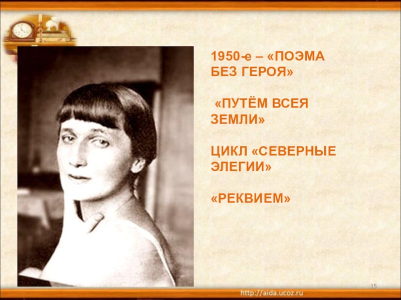 *1950-е – «ПОЭМА БЕЗ ГЕРОЯ» «ПУТЁМ ВСЕЯ ЗЕМЛИ»ЦИКЛ «СЕВЕРНЫЕ ЭЛЕГИИ»«РЕКВИЕМ»