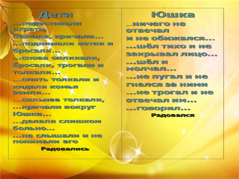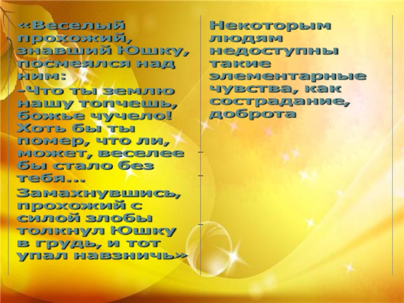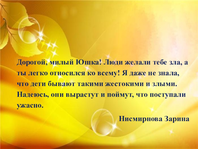 Слайд 36Дорогой, милый Юшка! Люди желали тебе зла, а ты легко относился