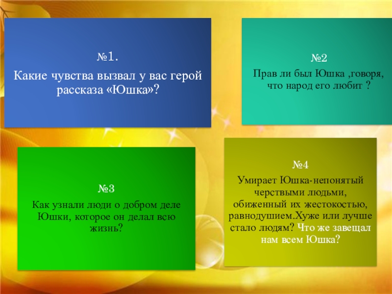 Слайд 29Каким чувством переполнено сердце Юшки?
