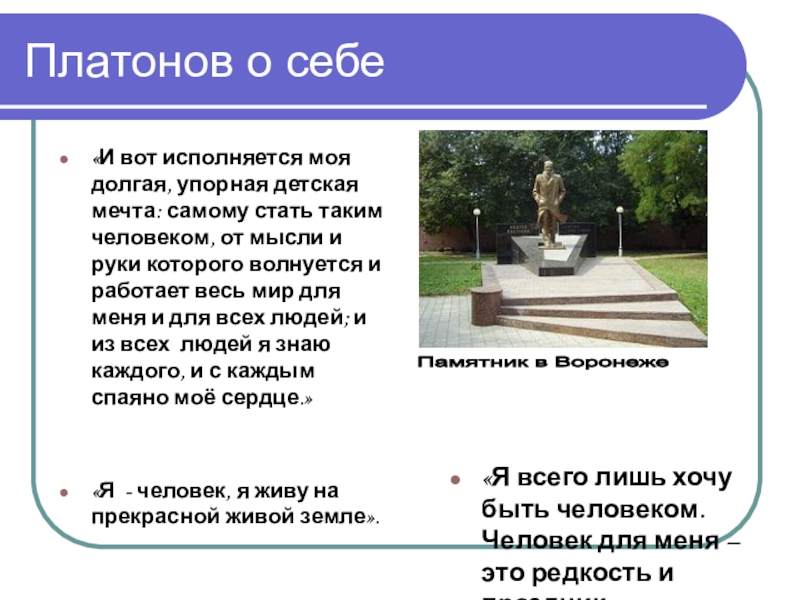 стать таким человеком, от мысли и руки которого волнуется и работает весь мир для меня и для всех людей; и из всех людей я знаю каждого, и с каждым спаяно моё сердце.»