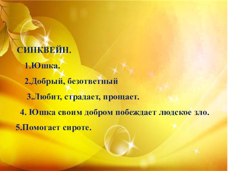 Слайд 33 В вашем селе жил прекрасный человек по имени Юшка. Мне