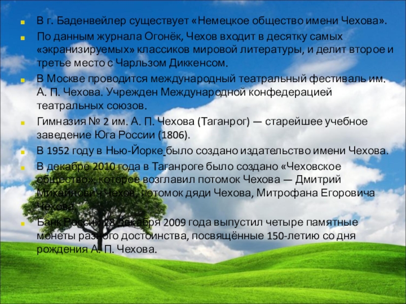 Слайд 27В г. Баденвейлер существует «Немецкое общество имени Чехова».