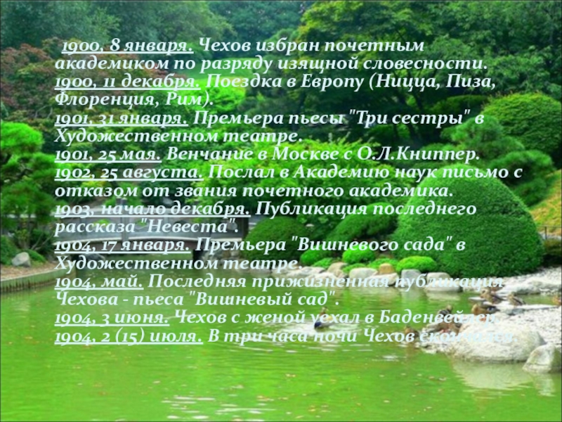 Слайд 24 1900, 8 января. Чехов избран почетным академиком по разряду изящной словесности.