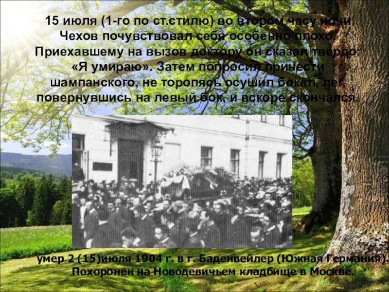 15 июля (1-го по ст.стилю) во втором часу ночи Чехов почувствовал