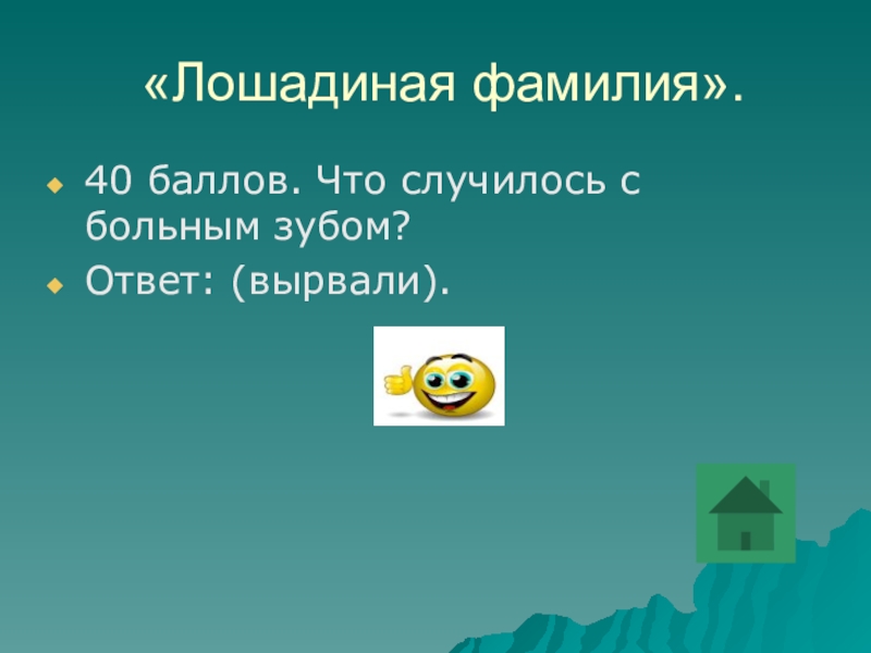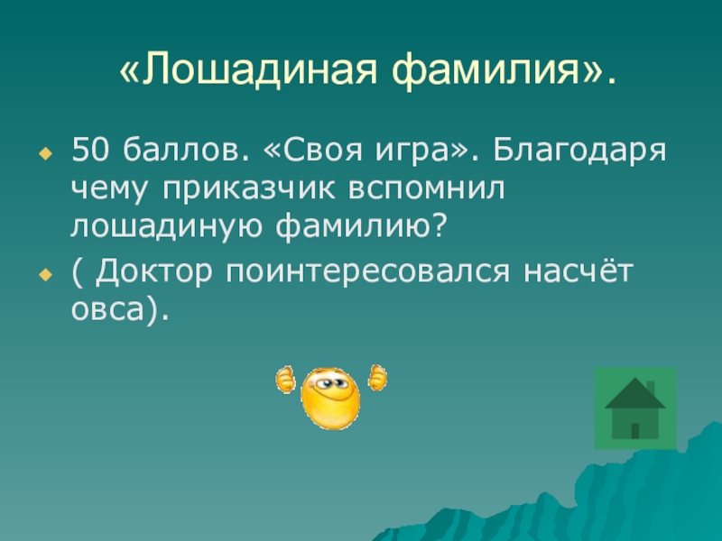 10 20 30 «Лошадиная фамилия» 10 20 30 40«Лошадиная фамилия» 10 20 30 40 50
