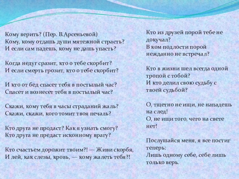 Лишь одному себе, себе лишь только верь.