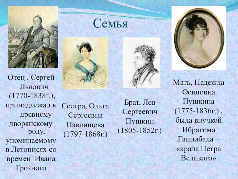 (1775-1836г.) , была внучкой Ибрагима Ганнибала – «арапа Петра Великого»