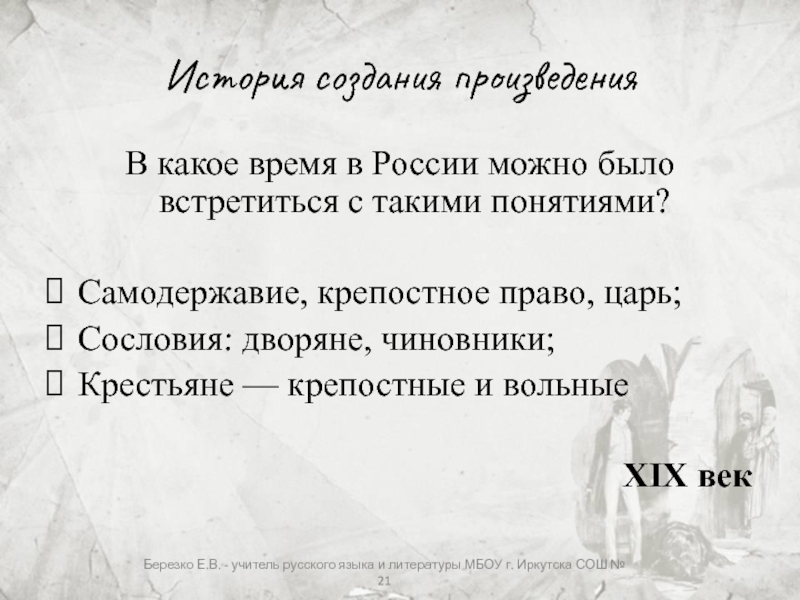 Березко Е.В. - учитель русского языка и литературы МБОУ г. Иркутска СОШ № 21