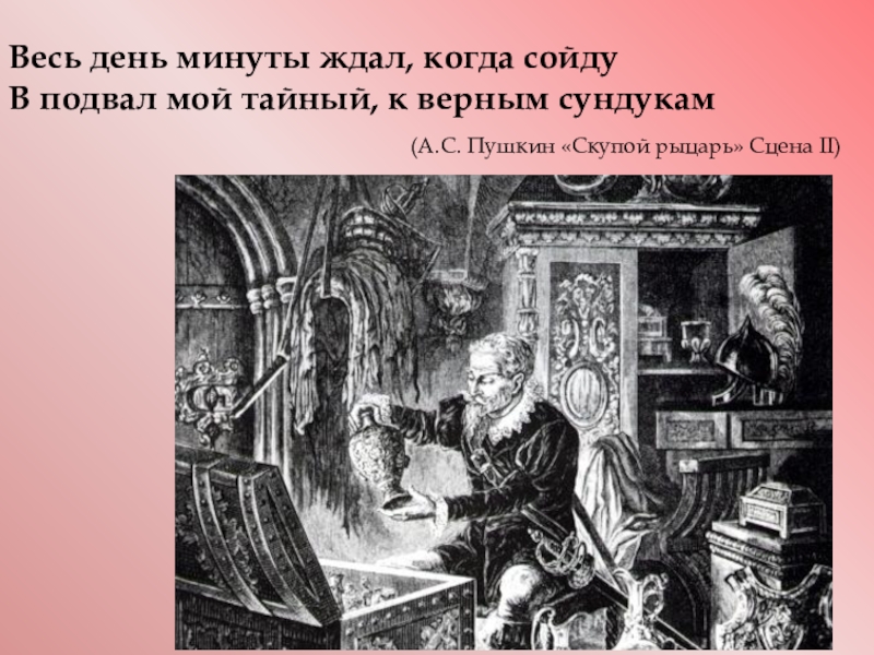(А.С. Пушкин «Скупой рыцарь» Сцена II)