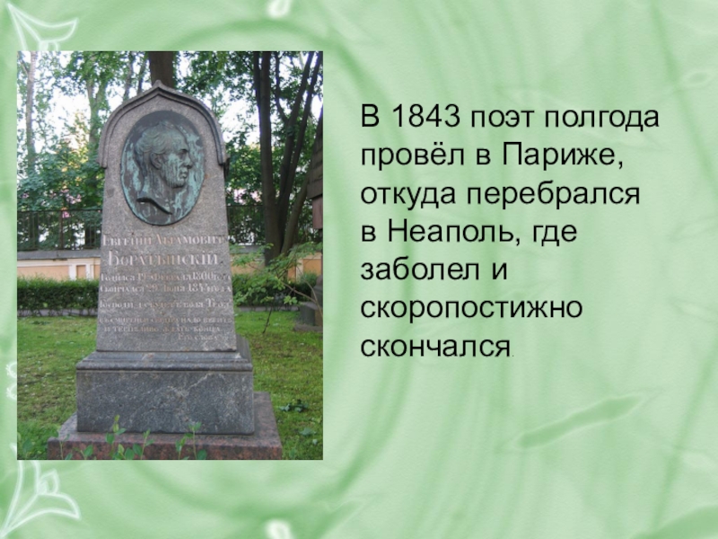 Слайд 3В 1843 поэт полгода провёл в Париже, откуда перебрался в Неаполь,