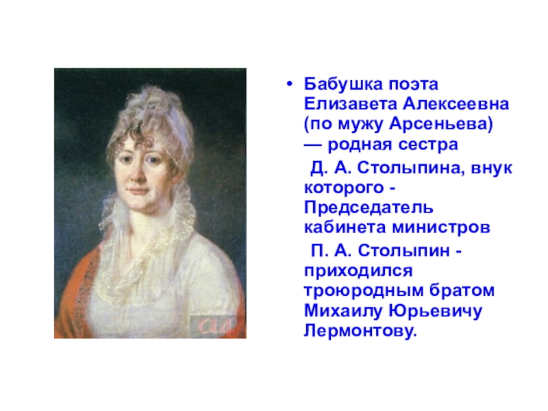 Слайд 5Бабушка поэта Елизавета Алексеевна (по мужу Арсеньева) — родная сестра