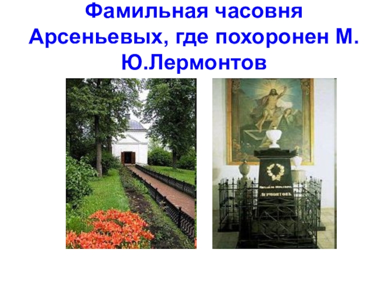 Слайд 16Фамильная часовня Арсеньевых, где похоронен М.Ю.Лермонтов