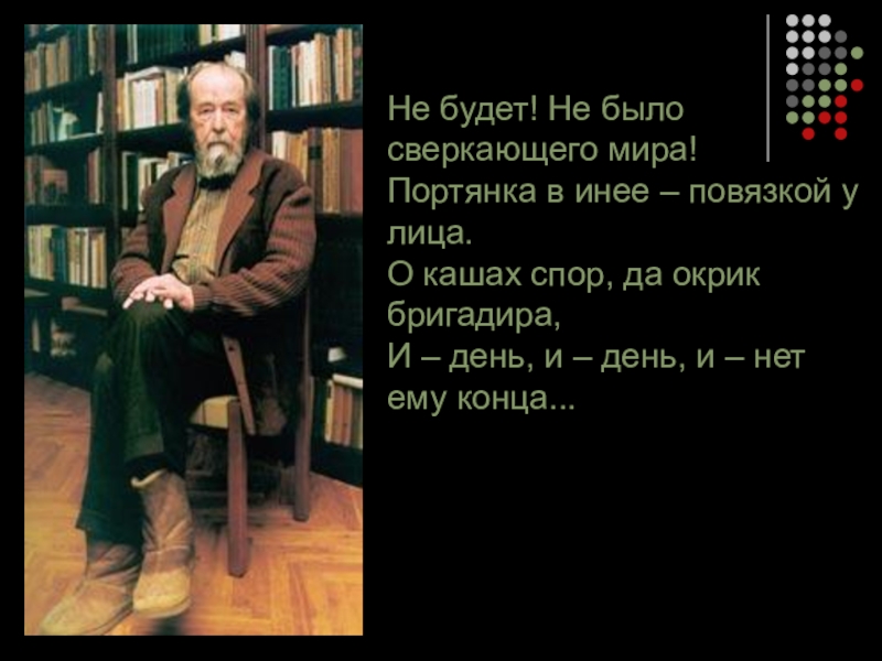 Слайд 2Не будет! Не было сверкающего мира! Портянка в инее – повязкой у