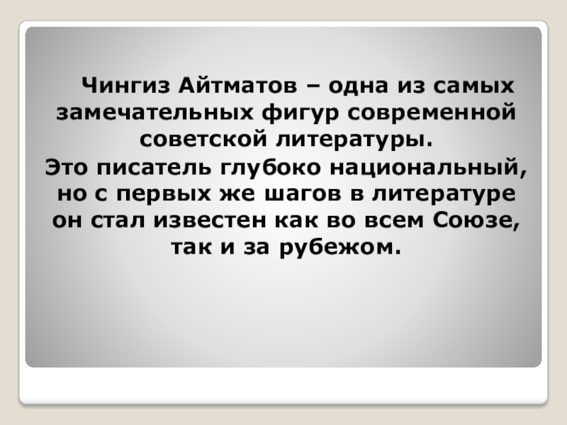 Слайд 15 Чингиз Айтматов – одна из самых замечательных фигур современной